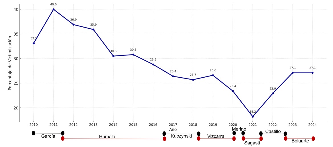 Gráfico N.º 1. Evolución de la victimización en el Perú: 2010–2024